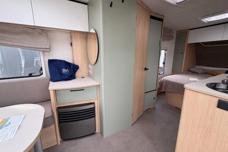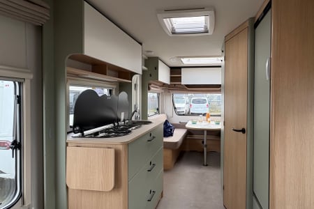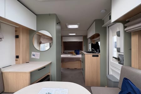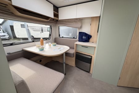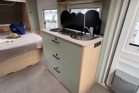 LMC établit de nouveaux standards dans le design de caravanes. Avec son look accrocheur dans le vert sauge tendance, ses décors en bois clairs et ses accents noirs mats élégants, le Style apporte un vent de fraîcheur à chaque vacances en camping – audacieux, moderne, unique.