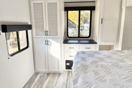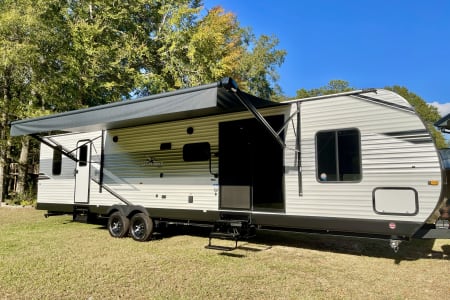 Welcome to this BRAND NEW 2026 Jayco! Spread out and get comfortable in this luxurious 2 Bedroom camper with tons of space! Relax with 1 King size bed, 1 Queen size bed, sofa bed, and dinette bed conversion. This camper features 3 ceiling HVAC units, an electric fireplace, and a tankless hot water heater, meaning hot showers for the whole family! Unwind with the indoor/outdoor Bluetooth speakers and LED lights under the large outdoor awning, as well as an ambience light on the front of the camper.
