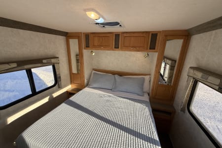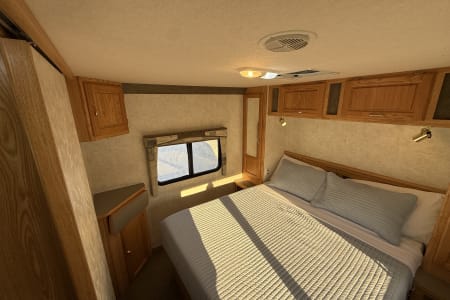 •Rear walk-around memory foam residential queen bed (2 adults)