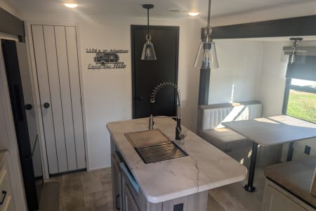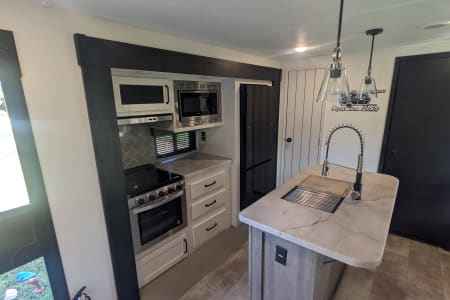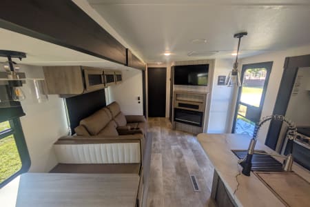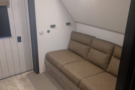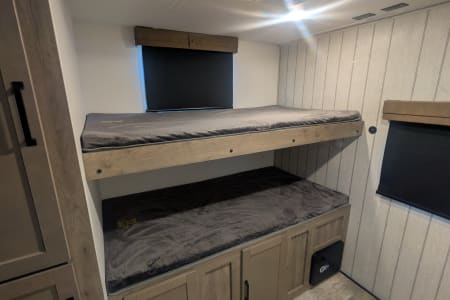 You will be the talk of the campground with this 2025 Puma 32BHFS travel trailer! Start your next adventure now and step into this 39', 4 slide spacious vacation paradise. This camper is perfect for families, sleeping 7 comfortably and comes with 3 air conditioners to keep everyone cool. The front private bedroom has a queen bed slide across from a dresser and a large front closet plus a second closet. Freshen up each morning in the full bathroom with the 34" x 34" radius shower with on demand hot water. You can enjoy your meals at the booth dinette, and the kitchen island will make clean up easier with the sink that has a high rise faucet and sprayer. The rear private bunkhouse has a 32" x 69" bunk above a jiffy sofa slide, a 36" x 69" bunk above a 36" x 71" bunk. The exterior comes with an outdoor kitchen consisting of a griddle, sink, and mini fridge. You'll also enjoy an electric awning with an LED light strip plus an AM/FM/Bluetooth stereo and two outside speakers to keep the party going!