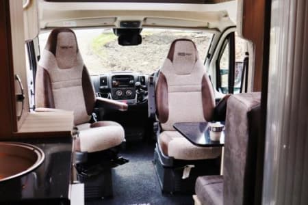 The cab area benefits from captains seats with cloth upholstery. Air conditioning helps keep you cool whilst out exploring on those warmer days, and heating helps to keep you warm overnight on the cooler evenings.