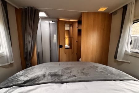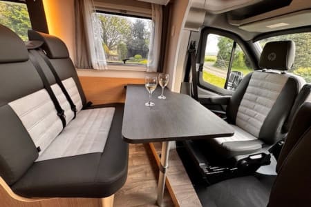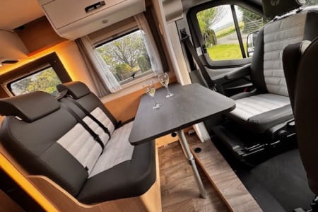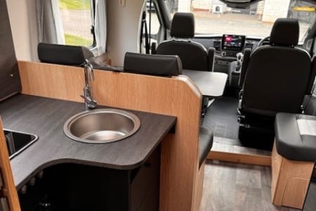 The motorhome has all the extra's you would expect from a luxury motorhome, including air conditioning in the cab, rear parking camera, flat screen TV, fully fitted kitchen & sleek overhead lockers with ambient lighting for stylish storage to name but a few.