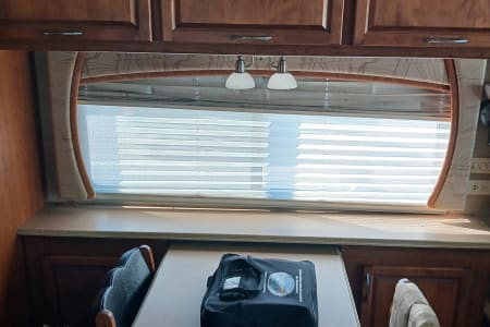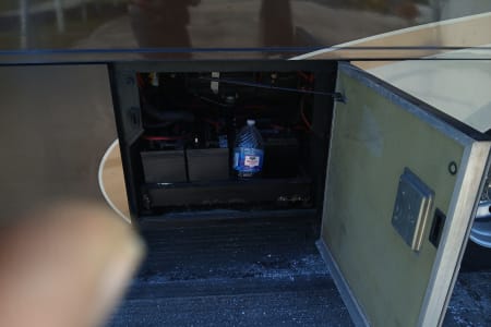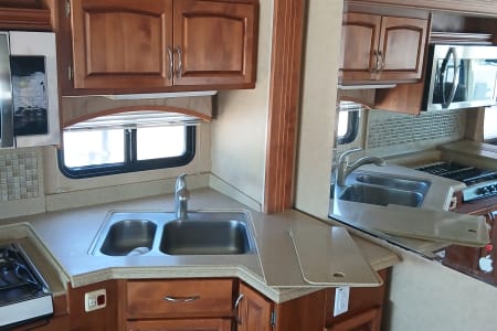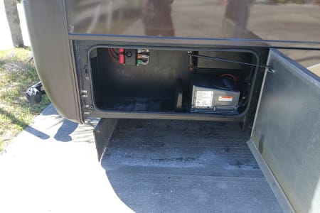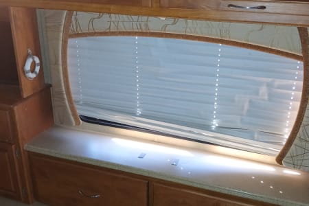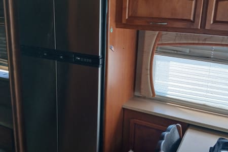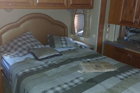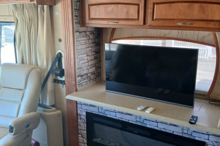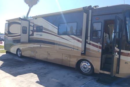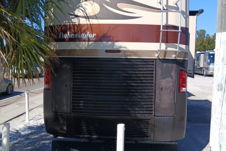 41 exact feet with a king bed in the master bed room which includes a master bathroom with a full size shower a washer/dryer in one full size closet toilet and sink with mirror that opens to a vanity with shells for hygiene placement space. The entrance of the RV has you come thru the passenger side of the front of this spacious beauty and you see the captain and co-captains chair with spacious room to move and stretch while driving. You have all the buttons to the left and right of the driver's seat that control wall aspects of the vehicle. From hydraulic lift for when you park and get ready to pop the slide outs out which this RV has 3 main slide outs that make it into a 1000 sq ft condo on the inside when everything is extended and the awnings that cover all sides and protect all windows and glass features on the outside of the RV while parked and stationed for however long you plan on being at the destination you stop at. To the left of the RV when you pass the the front driver and front passenger chairs you see that a tan leather couch is sitting to the right which have 2 recliner seats on each side for relaxing TV watching which you get to enjoy the heat from the fireplace and view of the 42 inch flat screen above that 5 feet across from you if your enjoying the comfortable leather couch with another friend or loved one. Next to the couch is a dining room table with 4 seats available to sit around the table so people can enjoy a nice meal together after cooking up a homemade meal out of the full blown updated kitchen with an oven, 4 burner stove top, plenty of counter space to prepare food for the meal that your fellow vacationers are about to enjoy from the nice homely feeling of having the option of cooking a 4 course meal or just a snack in the best part of this ahead of its time RV that most people will never be able to enjoy such exquisite design of a 6 figure RV that you don't have to leave if you don't feel like it bc it has everything you need including another half bath that has a four door refrigerator/freezer across from it. The entire Ambassador has more cabinet and drawer space than ever needed for just 6 people bc every inch of this 41ft beauty has a cupboard to git your special and important belongings safe and secure while traveling and stationary. The awnings that cover both sides completely will allow you to enjoy the outside even if the weather doesn't want you too. With all that you have to remember that this big beauty has storage space for whatever you need or desire. From the back of the rv where the generator lies, you have the inverter on the opposite side next to the 6 car batteries that power the RV. 4 of which power all components inside the RV and make sure you won't have a unpowered vacation and the other two batteries that power the engine that you do turn to idle while stationary so they dont run out of power. The other side of the RV next to the generator you have the electricity hookup, the water hookup for all three tanks which supply the shower, the sinks, the toilet and flush the sewage into the sewage line disposal and the washer and dryer. Which in this RV they are one machine that does both the washing and drying so the efficiency is at the best it possibly can be. The AC and Heat are in amazing condition with the ability to make the RV custom to how you and your fellow vacationers want it to be set at.