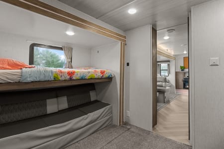 Occupancy: Rental price covers RV only - no guests included. Cozy Package required per guest for complete comfort amenities (linens, towels, toiletries, kitchen essentials, etc.). Guests are welcome to bring their own cozy extras and amenities.