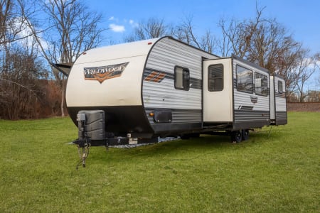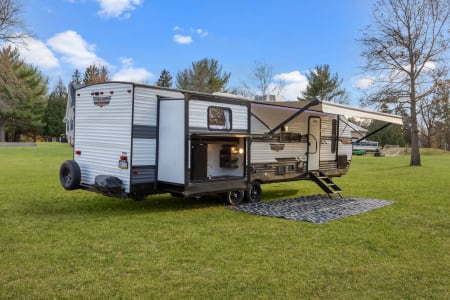 Looking for a getaway that fits the whole crew—kids, grandparents, or even multiple couples? The Cozy Wild Woods Outpost was made for it. With versatile sleeping spaces, an outdoor kitchen setup, dual A/C, and thoughtful touches like a second bathroom door and upgraded mattress, this spacious camper delivers a relaxing, fun-filled escape where everyone can spread out and settle in.
