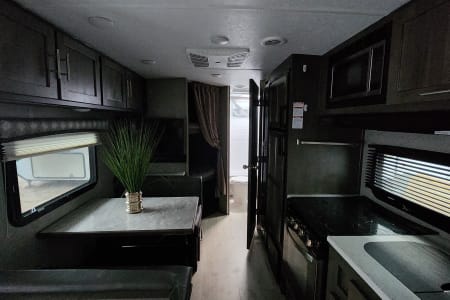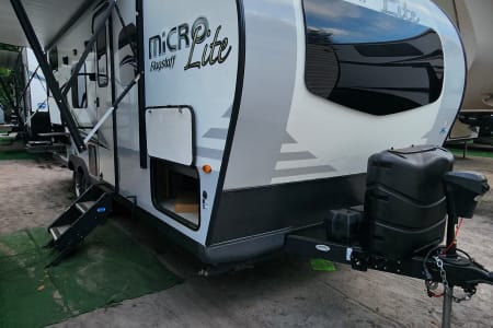 The 2021 Flagstaff Micro Lite is a lightweight travel trailer by Forest River, designed for easy towing with midsize SUVs and trucks. It features an aluminum frame, composite walls, modern interiors, and smart layouts like Murphy beds or bunk options. It is compact size, it includes amenities such as a full kitchen, bathroom, power awning, and solid insulation—making it a comfortable, efficient option for couples or small families.