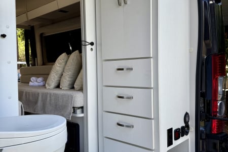 Experience the perfect blend of convenience, versatility, and maneuverability with the Entegra Ethos, a luxury camper that sleeps 3 without sacrificing comfort. Whether you're navigating city streets or chasing sunsets, the Ethos delivers a smooth ride, smart design, and upscale amenities for travelers who want it all. This Brand new 2025 Entegra Ethos RV camper was built in the RAM ProMaster 3500. It’s perfect for spontaneous getaways, scenic backroads, or just a couple with their dog that enjoys chasing sunsets in total comfort. Our campers was named after our dog Benji in his loving memory. He enjoyed being the co pilot on the road and our security guard at the camp sites.