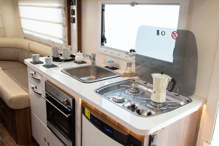 It has a comfortable 6ft U-shaped lounge and provides a perfect space and atmosphere for socialising and relaxing after a day outdoors, and then converts easily into either 2 single beds or a large double. The large overcab bed can be left made up but can also be pushed up to provide extra headroom when entering and exiting the cab. The dinette can also convert to another double bed making 6 berths in total.