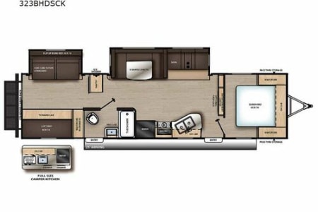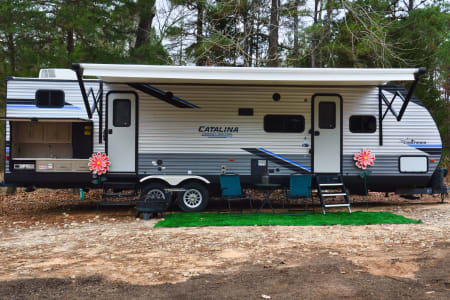 It's a Memory Maker! Spacious, family-friendly 2022 Coachmen Catalina Legacy Edition 323BHDS offers comfy sleeping for all, a well-equipped kitchen, slide-out living space, and plenty of storage. Enjoy home-style amenities, a cozy bunkhouse for kids, and an outdoor kitchen — perfect for unforgettable family camping adventures under the stars.