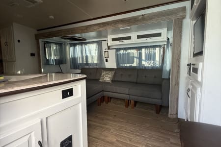 Specs at a glance: Length (with hitch): ~40 ft Width: 8 ft | Height: ~11.4 ft Dry Weight: 7,710 lbs | GVWR: 9,975 lbs Comfy, spacious, and ready for adventure — your next trip starts here!