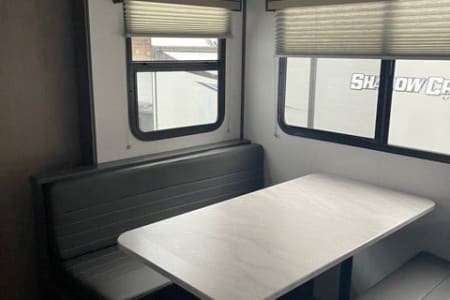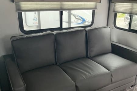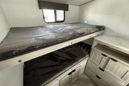 We love the great outdoors and this camper is perfect for those families that like to get away from the busy city life to spend some quality time together. This is a Quad bunkhouse model! It has one large slide. This unit has a small dinette in the back for the kids to play games. Outside kitchen makes hanging under the awning fun! Plus the Smart 40 in LED TV and DVD player is great for movie time if you have a rain delay in your family fun time. It is extremely lite weight coming in at 5930 lbs. Two AC Units. Making this unit 1/2 Ton towable, and for your safety we provide a equalizer antisway hitch. Sleeps 10.