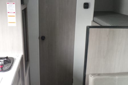 This lightweight and easy-to-tow travel trailer is perfect for couples or small families, comfortably sleeping up to 5. At just 21 ft 5 in long with a dry weight of 3,100 lbs and 399 lb hitch weight, it’s ideal for SUVs and smaller trucks. Inside, enjoy a practical layout with a 3.3 cu. ft. 12V refrigerator, 2-burner cooktop, and on-demand tankless water heater for continuous hot water. Stay comfortable in all seasons with an 8,000 BTU A/C and 20,000 BTU furnace. This camper includes a standard shower, power awning, and solid tank capacities (21 gal fresh / 28 gal grey / 28 gal black) for weekend trips or longer stays. It also features 30-amp service and a 20 lb LP tank. Compact, efficient, and simple to set up—this camper is a great choice for state parks, weekend getaways, and first-time RV renters.