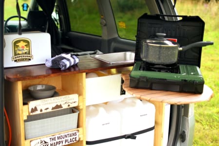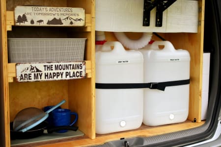 Smart Utilities: Freshen up after a hike with the 12V external shower and enjoy the convenience of an electric water tap.