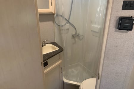 Full bathroom with shower, toilet & sink