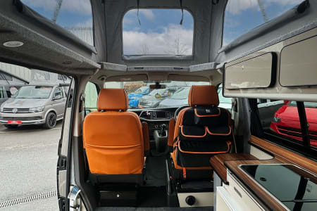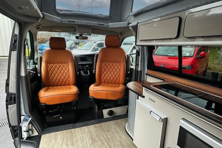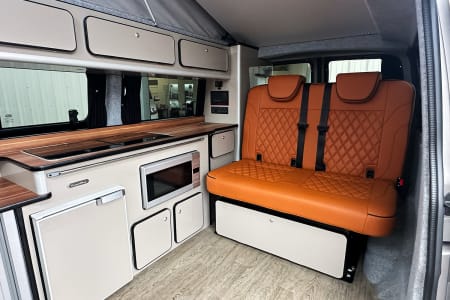 Inside, it’s a true 4 berth with 4 belted seats, making it a great option for families or two couples travelling together. For family travel, the rear seat includes two ISOFIX points for child car seats. Up front, both the driver and passenger captain’s seats swivel, opening up the lounge area so you can relax, eat, and plan the next day’s route together.