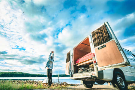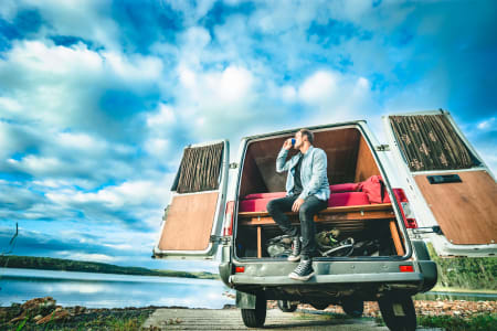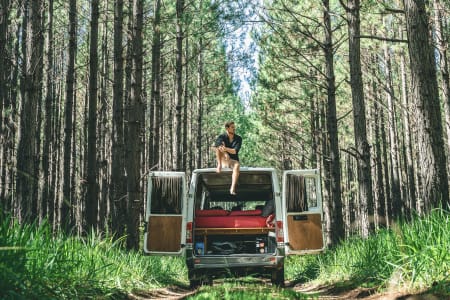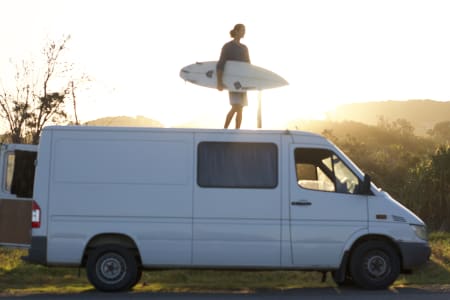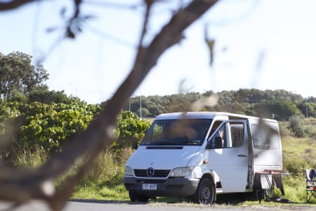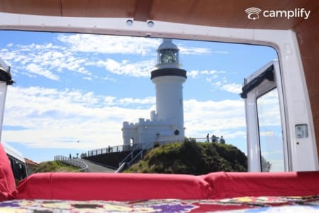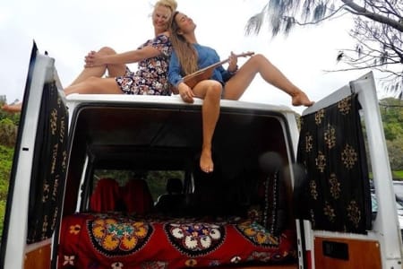 Inside the van is a queen bed with a real innerspring mattress, quality linen, goose down doona and beach and bath towels are provided.