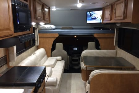 This RV is simple to operate and easy to drive. Winnebago is the industry leader in quality and reliability. Delivery and pickup is available within our delivery area. Owned and operated by a 14yr certified RV tech. Sleeps 6 and has 3 T.V.'s (1 outside), generator, outside table and chairs, outdoor rug, bike rack (upon request), grill (upon request), fresh linens, plus much more. No standard cleaning fees. No surprise fees. All you need is your luggage and food. Leave the worries behind.
