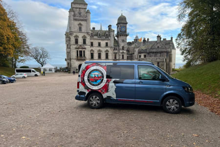 This blue part-Tartan wrapped, VW T6 is a great example of the conversions on offer from the Tartan Camper Co. Complete with Rusty Lee double fold down bed, twin burner gas hob, sink, fridge, diesel cab heating plus additional sleeping for two in the pop top roof she is a real home from home. 5 speed manual gearbox, tinted windows, air conditioning, CD player and double swivel fitted to the front seat, this is the van for the Tartan Camper who wants to tour the country in luxury and style.