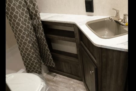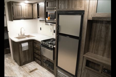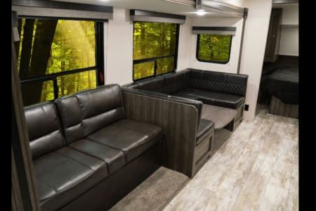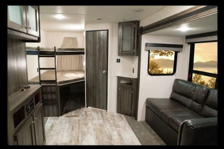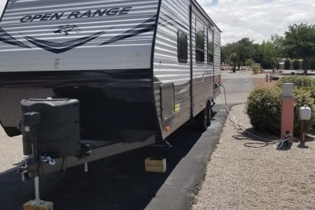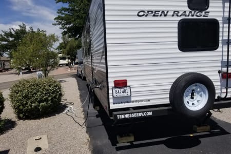 Spacious trailer with outdoor kitchen and powered awning. Sleeps 10.