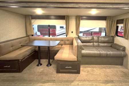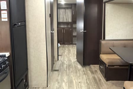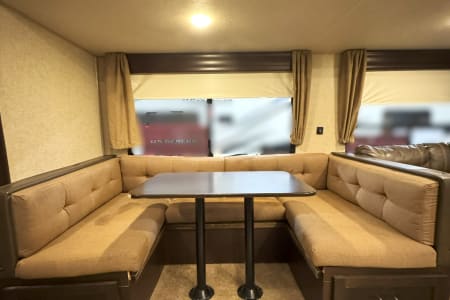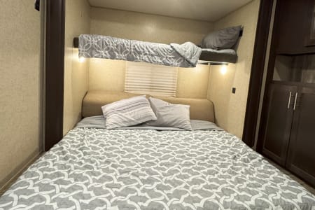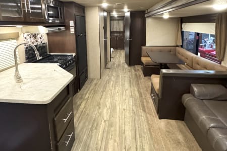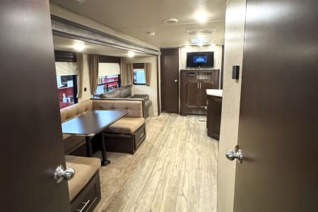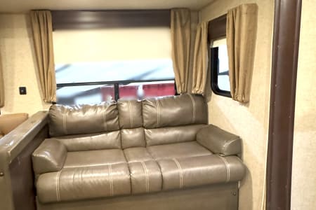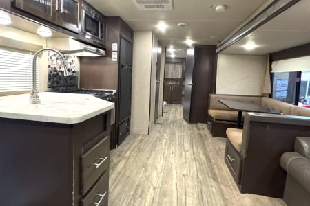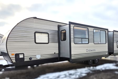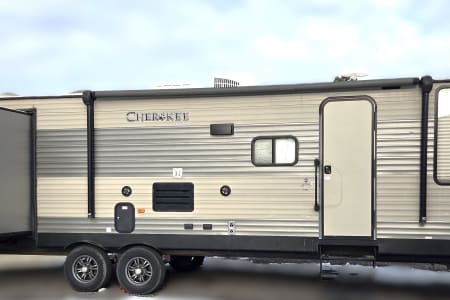 Enjoy comfort, space, and unbeatable value with the 2017 Forest River Cherokee 304BS for just $145 per night. This spacious travel trailer is perfect for families or groups looking for room to spread out and relax. With THREE slide-outs, a private master bedroom, and a separate bunkroom, everyone has their own space while still enjoying time together. The large living area and full kitchen make meal prep easy, and the comfortable seating is ideal for winding down after a day of adventure. Whether you’re planning a campground getaway, seasonal stay, or festival weekend, the Cherokee 304BS delivers the space and functionality you need at a price that makes it easy to extend your trip.