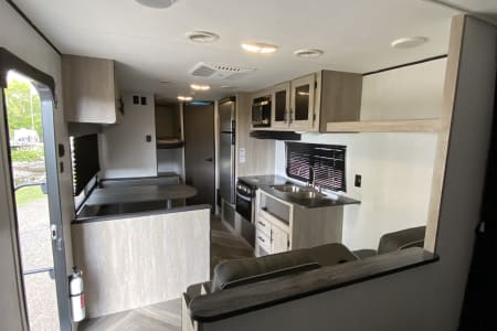 EZ Clean Interior – No carpet, full linoleum on main floor and slide outs