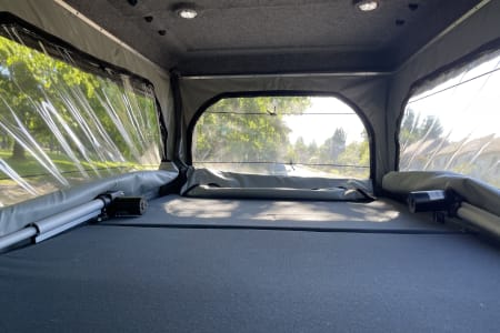 Kaya is a special VW Camper van. The Colorado Camper top upgrade is a motorized full pop up upgrade with dimmable LED lighting gives this van so much more headroom and a bigger open feel. It provides the best sleeping experience up top with 6 large zip up windows and screens. The ventilation and connection to nature while sleeping in this van’s two comfy beds is a big plus.