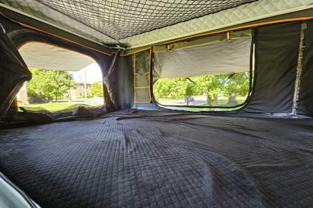 This trailer is ready for any season or weather, with a heater to keep you warm and cozy in the winter and ceiling fan to keep you cool on the hottest summer nights. The fan combined with the windows cracked creates the perfect cross-breeze...I actually found myself grabbing a blanket on a 95deg July night.