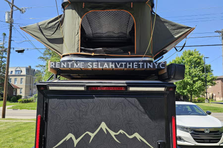 Escape for a while in our teeny tank of a trailer. "Selah V" features a queen-sized 4in memory foam convertible (two trifold sofas) mattress for comfort and a fully-equipped kitchen with a removable sink basin, propane camp stove, and portable refrigerator cooler. Our trailer has everything you'll need to make your camp dining a 5-star experience.