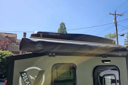 Selah's compact size makes it easy to transport and maneuver but it offers tons of storage space for all your adventure gear and even a cabinet with hangers for the glampers (hi, that's me)!
