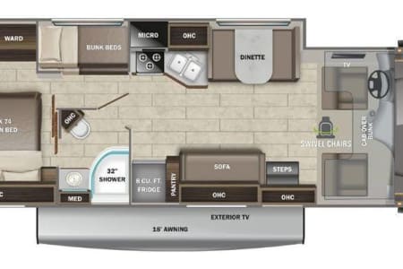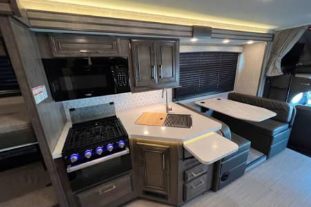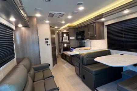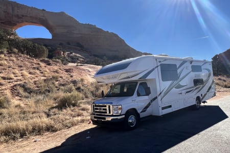 Explore the outdoors in comfort with this spacious and fully stocked 32-foot Class C motorhome! Built on a Ford E-450 chassis with a full-wall slide-out, it offers everything your family needs for a smooth, fun-filled trip.