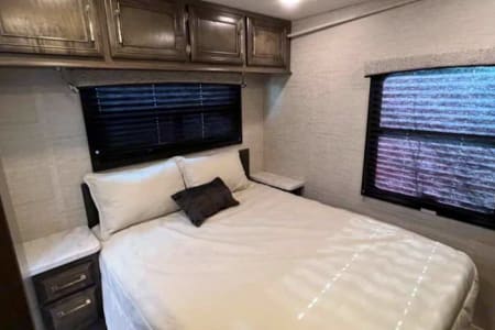 • Full-size overhead bunk with 40” TV/DVD and skylight