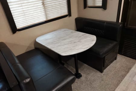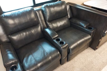 If relaxing inside is more your style, stretch out on one of two leather recliners with a big screen television to watch your favorite show or movie. Also enjoy our fireplace that not only makes you feel nice and cozy, but keeps you warm and toasty as well.