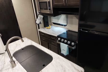 Our spacious kitchen with an island let's any guest spread out and have room to cook their favorite meal. Stock your favorite drinks and meals in our oversized fridge and freezer.