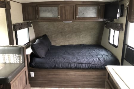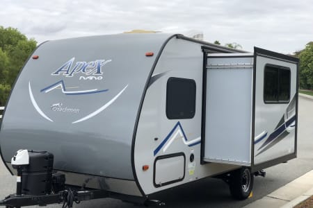 Thank you for your interest in our 22’ Apex Bunkhouse Travel Trailer, we hope this will be a perfect fit for you and your family. The layout of this coach offers one of the most spacious interiors in its class; it comes equipped with a bunkhouse in the rear for the kids, a residential size queen bed located in the front and a convertible dining room table which turns into a full. This is one of the lightest bunkhouse trailers available on the market with a slide-out; Allowing it to be towed with most mid-sized SUVs and Crossovers. Because of its length, it allows for easy towing and maneuverability, in addition, it meets most state and federal park length regulations, allowing you the freedom to camp wherever you want.