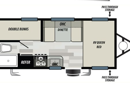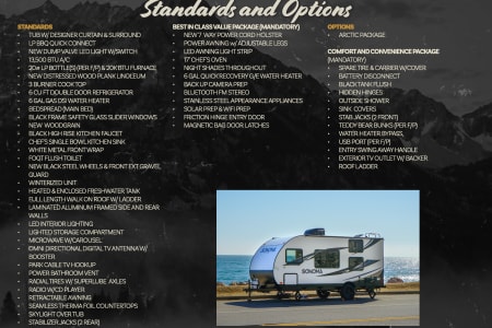 Your camping off-grid and or boon docking, you’ll have access to lights, listen to the radio, fire up the stovetop/oven and or take a break in the bathroom (shower and toilet). Dry camp with access to Propane tank(s), onboard batteries (limitations apply) and optional generator. The generator will power convection microwave and blast the super cool air condition during the hot summer days. If you're into winter the RV is equipped with a furnace to keep things even warmer on those cold nights.