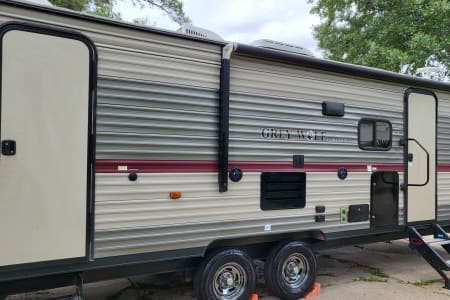 You are going to love this rv its has so many great things about it Its a 31dt Cherokee Grey wolf travel trailer its sleeps 8 guests it has a queen size bed two full size bunk beds a soda bed and also a table conversion bed. It's has a stove ,microwave, nice size pantry ,restroom with shower and sink it has led lights inside an out its has outside speakers , outdoor grill , outdoor shower ,awning it also comes with sheets and pillows on all beds , pots an pans , coffee maker with complimentary coffee, blender , dinnerware, knives, dish towels, face towels ,trash bags ,white fresh water hose ,gloves waist water hose an outside rug
