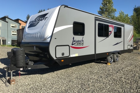 2016 Starcraft Launch 27BHU – Perfect for family adventures! This spacious bunkhouse travel trailer comfortably sleeps the whole crew with double-over-double bunks, a private front queen bedroom, and a convertible dinette and sofa. The fully equipped kitchen includes a fridge, stove, microwave, and ample storage. Enjoy a full bathroom with large shower, plenty of interior space, and outdoor speakers for relaxing at camp. Easy to tow and thoughtfully laid out, this trailer is ideal for weekend getaways or extended trips. This trailers large slide out room is and feels extremely spacious and open.