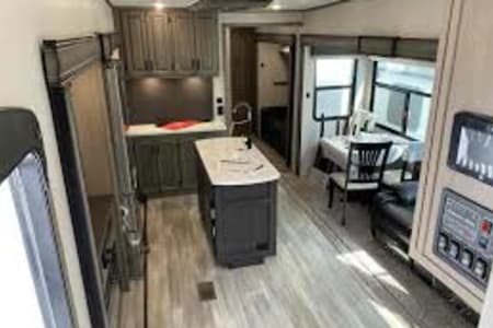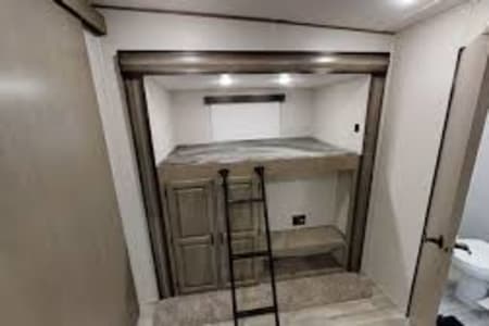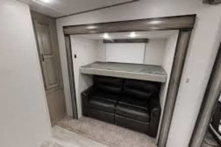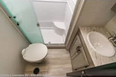 This is a 2 full bath, 2 full bedroom RV. Full-size refrigerator, stove, microwave oven, and a large TV. There is a queen bed in the front bedroom and a queen fold-out bed in the back bedroom. There are also two twin-size bunks in the back bedroom. 2 AC's that cool the coach down to comfortable living. Understand that the quote you get from this site is not the final quote. We will give you an accurate quote once you give us the address to calculate the mileage. We look forward to your request.