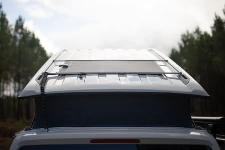 We have fitted the van with a solar panel system that powers an auxiliary battery. This enables you to camp for extend periods of time without the need to hook up to a power source.