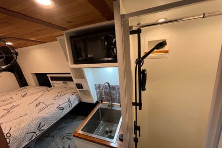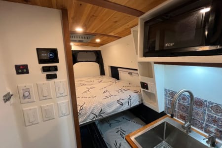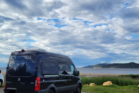 Navire is a 100% Off-Grid fully equipped 2020 Mercedes-Benz Sprinter van. Featuring a custom, professional conversion fully equipped with a queen-sized bed, twin bed, sink, shower, water heater, induction stove, microwave, ventilation, Air Conditionning and programmable heater. Tons of storage space for all of your adventure gear, kayaks, surfboards and bikes!