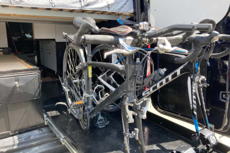 -bike rack and thru axle traps for easy set up on the bike tray (up to 3 bikes)