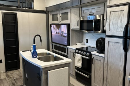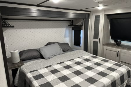 Enjoy your stay with glamping in style! This High Country is loaded with 2 bedrooms and 1.5 baths. Each bedroom has its own private toilet for privacy. We have enjoyed this trailer across the southwest of the US on our journey down from Alaska during our military permanent change of station.