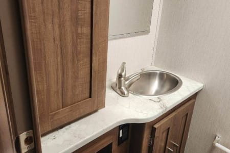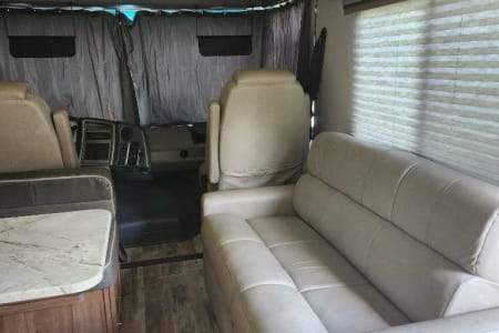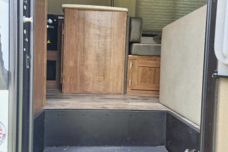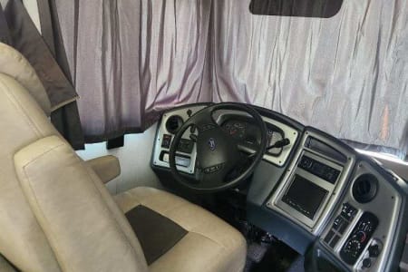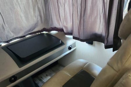 The RV is gas powder. Two TV and DVD player in living area. Microwave. Refrigerator. AC unit. No slides.