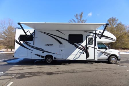 You will want to schedule plenty more vacations as soon as you snatch up the Jayco Redhawk Class C gas motorhome! The JRIDE® system from Jayco is an excellent component that features a computer-balanced driveshaft, standard front and rear stabilizer bars, Hellwig helper springs, and rubber isolation body mounts. This is what provides you with the very best driving experience. The backup camera also adds to the cab's functional abilities. There is a water filtration system and pop-up charging station with 110V outlets and USB ports in the Redhawk, and some other reliable features that you'll find on each model are the interior command center, the Onan 4,000-Watt MicroQuiet generator, the exterior utility center, and the high-output, marine-grade exterior speakers. All in all, the Redhawk delivers one of the best values in its class!