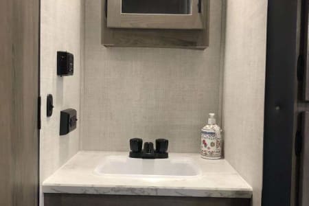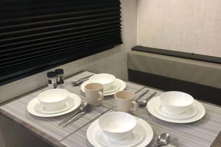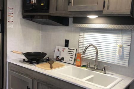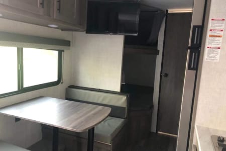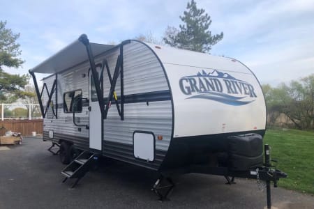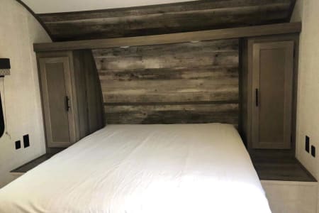 The brand-new RV, medium size, one queen size bed,and double size bunk beds,reasonable design, no sense of pressure, separate washing and toilet, clean and tidy, very comfortable, and independent space for children, very suitable for long-distance travel small hotels, providing microwave ovens, refrigerators, pots, dishes, simple seasonings for cooking, and outdoor beach chairs (2) to sit outside and enjoy nature.