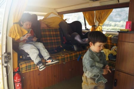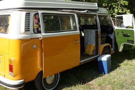 L'intérieur est fonctionnel avec une grande banquette 3 personnes clic clac, l'extérieur a été repeint en partie en jaune cet hiver 2022 pour lui donner un charme qui fera tourner toutes les têtes. Équipé d'une réserve d'eau de 20 litres, d'un évier et deux feux gaz à l'extérieur, vous pourrez même lever le toit et tenir debout pour cuisiner facilement à l’intérieur. Un couchage deux adultes sur le clic clac du bas et un couchage pour deux adultes sous le toit ouvrant vous assureront de passer des nuits inoubliables.A noter que selon les saisons et les disponibilités restantes, je peux demander 3 ou 4 jours minimum, à voir ensemble sur le tchat !