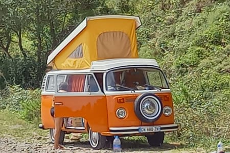 L'intérieur est fonctionnel avec une grande banquette 3 personnes clic clac, l'extérieur a été repeint en partie en jaune cet hiver 2022 pour lui donner un charme qui fera tourner toutes les têtes. Équipé d'une réserve d'eau de 20 litres, d'un évier et deux feux gaz à l'extérieur, vous pourrez même lever le toit et tenir debout pour cuisiner facilement à l’intérieur. Un couchage deux adultes sur le clic clac du bas et un couchage pour deux adultes sous le toit ouvrant vous assureront de passer des nuits inoubliables.A noter que selon les saisons et les disponibilités restantes, je peux demander 3 ou 4 jours minimum, à voir ensemble sur le tchat !
