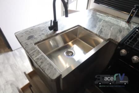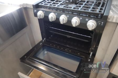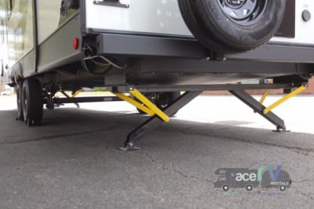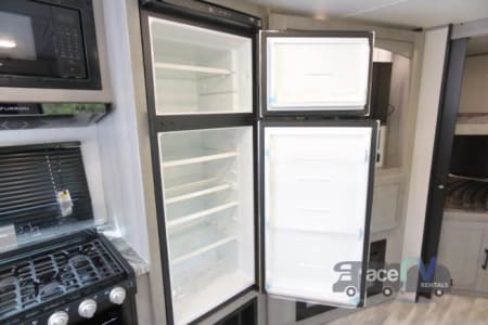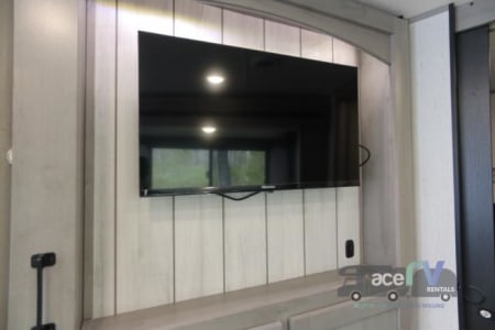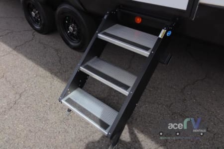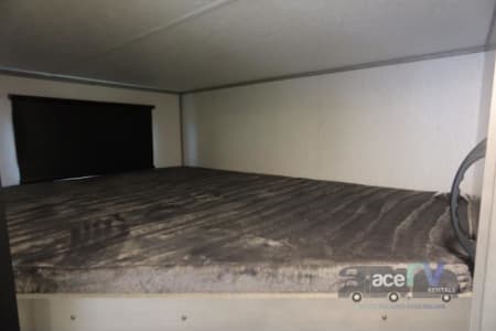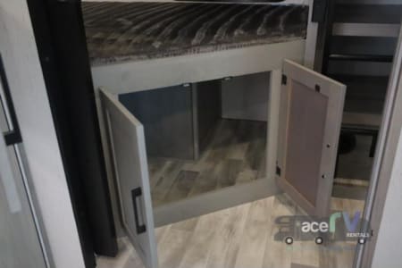 Comfort is found in this roomy travel trailer for eight! The rear bunk beds include their own door for privacy, plus there is a wardrobe here so your guests can store their things. When the large slide is out, the chef of the group can easily cook in the full kitchen, or they can use the outside kitchen if they need some fresh air. You'll also find Solid Entry steps, a 21' power awning with LED lights, plus a pass-through storage outside as well. You will love the front master bedroom with its queen bed with storage space on either side of the bed, plus the walk-through bath will be easily accessible for everyone to use!