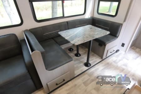 Each Kodiak Ultra-Lite travel trailer by Dutchmen includes a laminated crown roof, aluminum framing, and bear cage construction for a lightweight, yet durable RV. The HyperDeck flooring features fiberglass reinforced polypropylene, a higher density foam core, and a steel powder coated main frame. Head indoors to find seamless countertops, night shades throughout, and USB ports for your electronics. These travel trailers come with a power tongue jack and power stabilizer jacks for easy set-up, and easy lube axles to ensure smooth towing. Since the Kodiak Ultra-Lite is prepped for WiFi 4G LTE you can choose to get some work done while you're away from home, and you might even want to add the 32" LED TV available on some models!