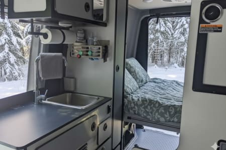 Winny is a fully self-sustained van providing the ultimate in comfort, amenities, and ease of travel. This brand new travel-tested, professionally built 2023 Mercedes-Benz Sprinter van has all the amenities. Great for solo adventurers, couples, or small families looking to live the van life and take their vacations to the next level. It comes with a freshwater and gray water tank capacity of 21 gallons each. The exterior of the camper van has plenty of features for a comfortable and relaxing experience.